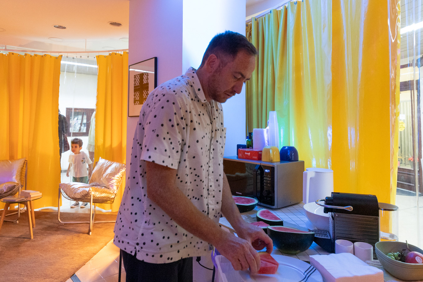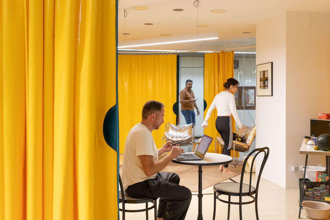 The Shopyard headquarters was converted into the "home" of the P22 artistic collective . This disruptive gesture challenges traditional notions of dwelling, blurring the boundaries between public and private and exposing the strangeness in what is familiar to us. Here, the everyday is transfigured, becoming unexpected and, at times, disconcerting.